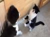 肉球と肉球のぶつかりあい。猫先輩からパンチを習う子犬