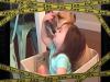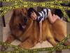 大丈夫、意地悪な波からちゃんと守ってあげるから!ビーチでで少女を波から守るガード犬