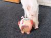チャリーンって、ちょっとご主人、お金で遊んじゃいけません!ブタの貯金箱にコインを入れるブタ