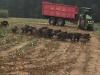 トウモロコシ畑を刈り取っていたらばだ。たくさんのイノシシたちが現れた!