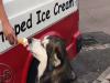 大好物のアイスクリーム屋さんを毎日まつアラスカンマラミュート犬