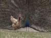 美しい羽を広げてニワトリにアピールしてみるも、カンペキに無視されるクジャクの悲哀