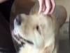 モフられ好きにもいろいろあるようだ。ガラス越しに撫でられるのが好きなゴールデン