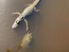「よう兄弟!調子はどう?」通りすがりのカメがワニにハイタッチ