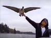 「だっていっしょに飛びたいんだもの!」人間に育てられたガン、疾走するボートと並んでお散歩を楽しむ