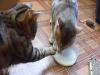 猫2匹が繰り広げた控えめな争い。猫、ミルク奪い合い