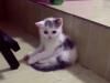 子猫、猫生初のオムレツにびっくりどっきりで立ち上がっちゃった