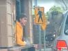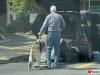 「さあ、もう少しだ、頑張ろうな」高齢の飼い主、年老いた愛犬を励ましながら車に乗せる