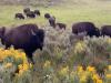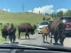 バイソンの移住?国立公園をドライブ中、バイソンの大群に遭遇。