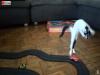 最初にネズミさんを持って行ったのはティーンくん。独占状態でゴロゴロゴロ。ご主人が近づいても「来ないで!」と怒っちゃうくらいワイルドに気に入ったみたいだ。