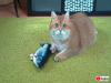 「これはいったい触ってもいいモノ?」子猫ちゃん、レーシングカーのおもちゃを追いかけてジャンプジャンプ!