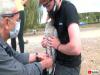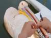 Wildlife Aid~はやくほどいてあげて!ハイイロガンの足に絡まった糸を取り除くスタッフたち
