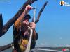ペリカンが漁網に絡まっている?通りすがりのボート乗りたち、網を切って救出に成功する