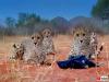 チーター一家が上着を持ってっちゃった!赤ちゃんのときから撮影し続けたカメラマンに、大きくなった子供たちが興味津々