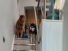 「やった!下まで下りられた!」階段が怖かった盲目のハスキー、先住犬の励ましで初めて下まで下りられた!