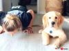 愛犬と一緒ならつらい修行も続けられる?飼い主の横で腕立て伏せに励むゴールデン