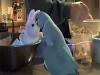 「こんにちは!仲良くしてね!」ウサギのぬいぐるみにご挨拶するワカケホンセイインコ