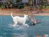 「ここまでおいで!」耳の聞こえない犬と元保護アライグマ、プールカバーの上でキャッキャウフフノ追いかけっこ