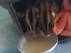 フクロモモンガが小さな袋から出てきて、バナナジュースをぺろぺろ。なんてかわいい光景でしょう。