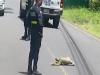 ナマケモノさんの横断歩道。警官や人々があたたかく見守る中、無事に渡り切ったよ