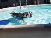 でもこのプールはあまり大きくないから、独り占めしたい…しちゃおう!と思ったわんこがいた。