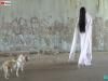 映画の中から出て来たの?突然現れた貞子的ナニカに、ビーグル犬たち反応に困る