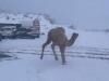うわぁ、真っ白!おもしろい!ラクダの子、初めて見る雪に興奮してステップを踏んでしまう