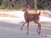 まるでアニメの中の小鹿?ポーズを取りながら道路を渡って行くバンビに遭遇した