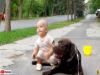 「パパばいばい!ボクたちのおうちはここだもん!」仲良し赤ちゃんと愛犬、散歩の途中で帰るのを拒否