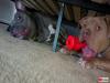 お風呂で拗ねたピットブルたち「もうずっとここにいる!」と、ベッドの下に立てこもる
