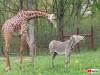 仲良きことは美しきかな。キリンに甘えてすり寄るシマウマ