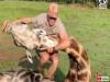 キリンの首にワイヤーが絡まっている!暴れて抵抗する巨体を押さえつけ、ワイヤーを取り除くことに成功