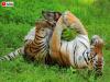 虎の鳴き声はガオーでもニャアでもなかった?眠いのに起こされたときの抗議の声と、モフられてうっとろりんな顔
