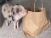 猫とブタ、紙袋の奪い合いスタート。紙袋でのんびりしていた猫と一緒に入りたくて荒ぶるミニブタ