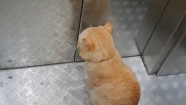 「まだつかないニャ」賢い猫、エレベーターで自分の降りる階まで辛抱強く待つ