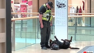 警備犬「ちょっと休憩させてね!」と、仕事中に床に転がりブレイクダンスを披露する